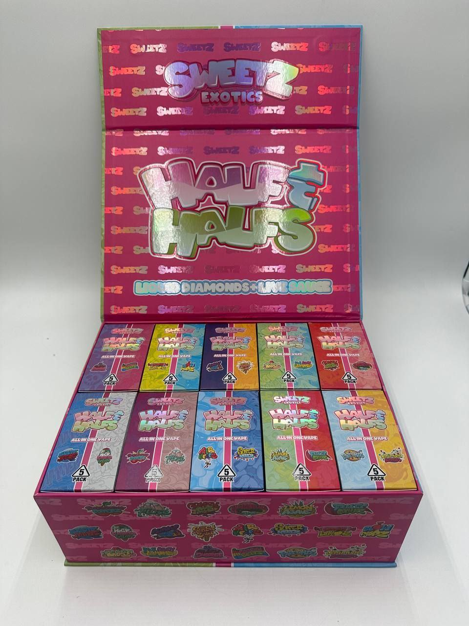 Sweetz Exotic devices feature bold, recognizable branding. The Half & Halfs Disposable maintains this identity with clean visuals and clear flavor distinction.